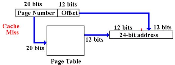 virtual memory system uses a page table to produce a 24–bit physical address.